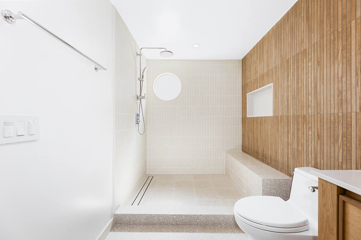 This Los Feliz single-family home was transformed with a harmonious blend of Japandi and mid-century modern styles in the main bathroom remodel and an eclectic touch in the newly added half bath and laundry room. Designed to maximize both function and aesthetic appeal, the spaces feature thoughtfully selected materials, custom craftsmanship, and unique details that elevate everyday living.